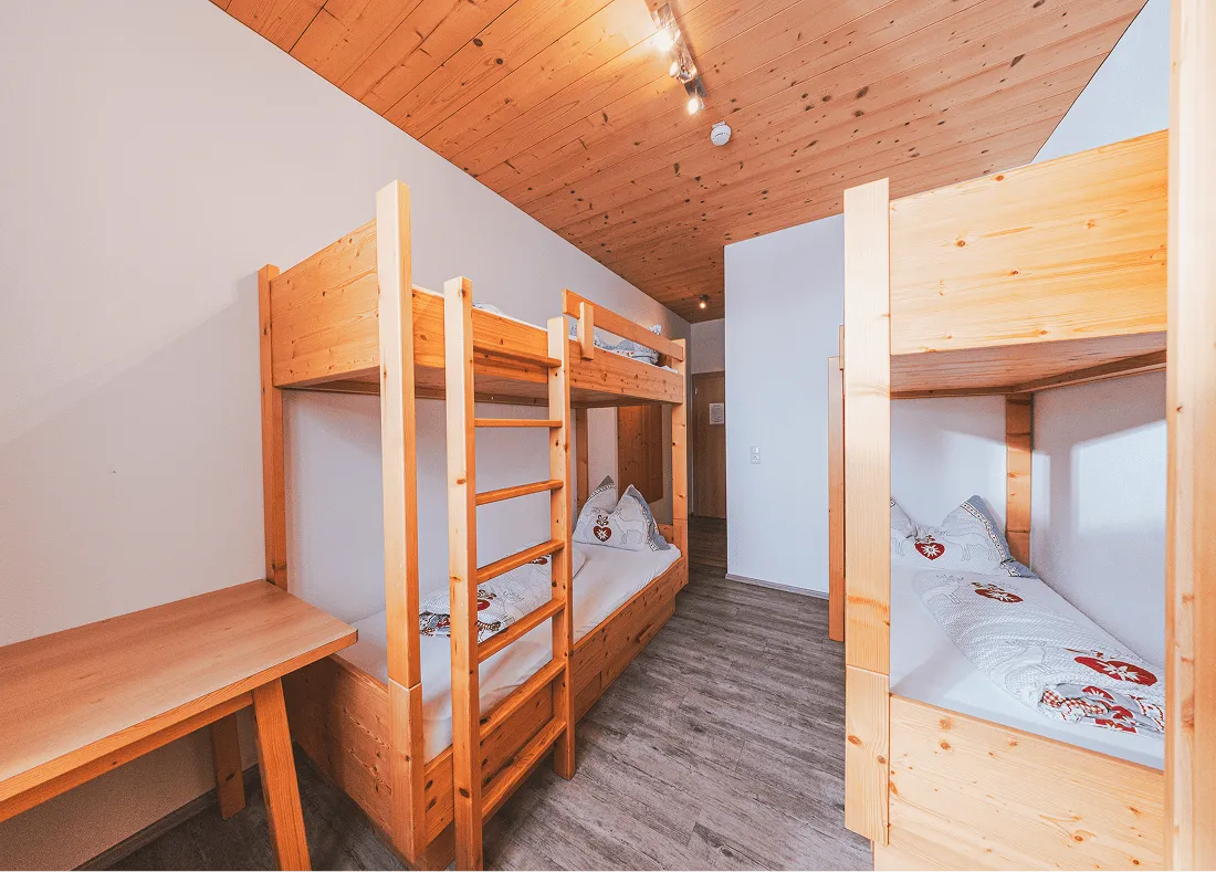 Alle Zimmer sind mit vier Betten ausgestattet und eignen sich ideal für Gruppen, Familien oder gemeinsam reisende Freunde. Jedes Zimmer ist hell, komfortabel und funktional eingerichtet.